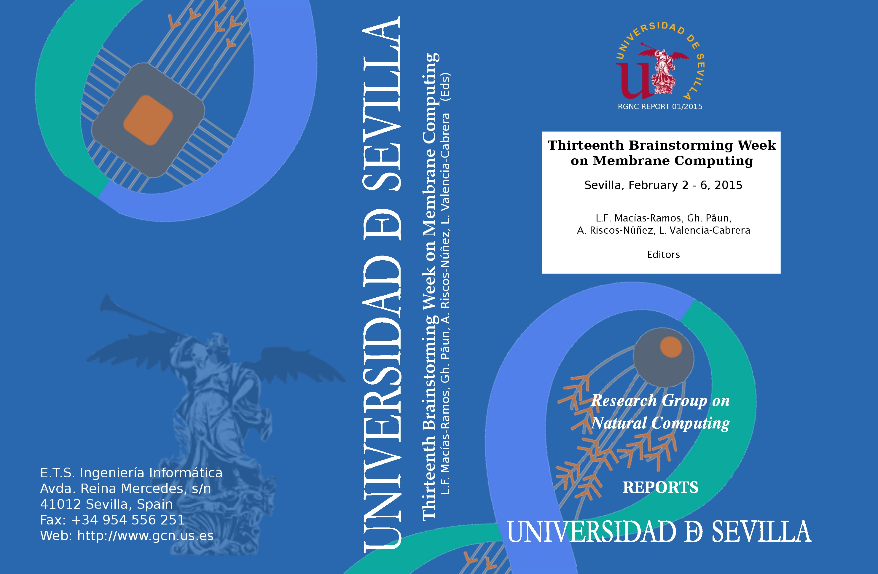 The Proceedings of the Thirteenth Brainstorming Week on Membrane Computing can be freely downloaded below. The Thirteenth Brainstorming Week on Membrane Computing was held in Sevilla (Spain) on February 2-6, 2015. The whole book consists of one volume (click on the cover to download it). Each contribution is available separately on the table below.